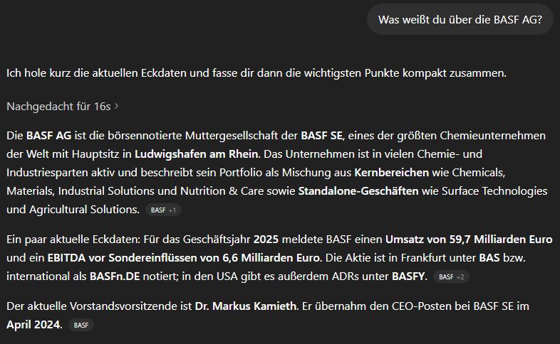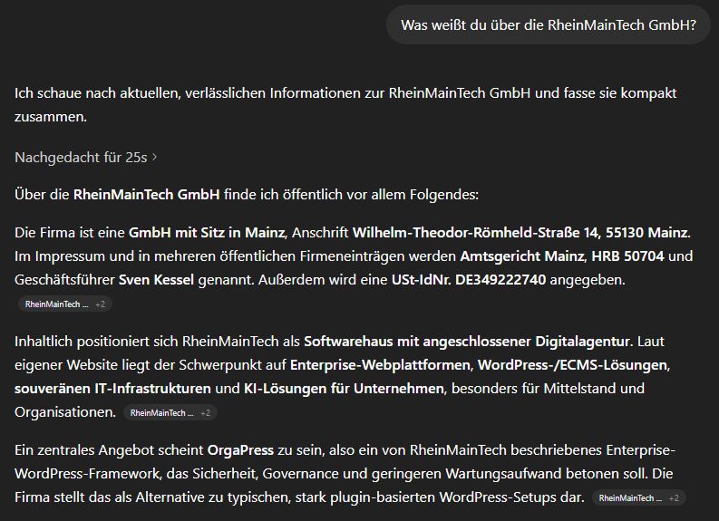 Bonus - Ein einfacher Trick: Fragen Sie neutral, was die KI über Ihr Unternehmen weiß.