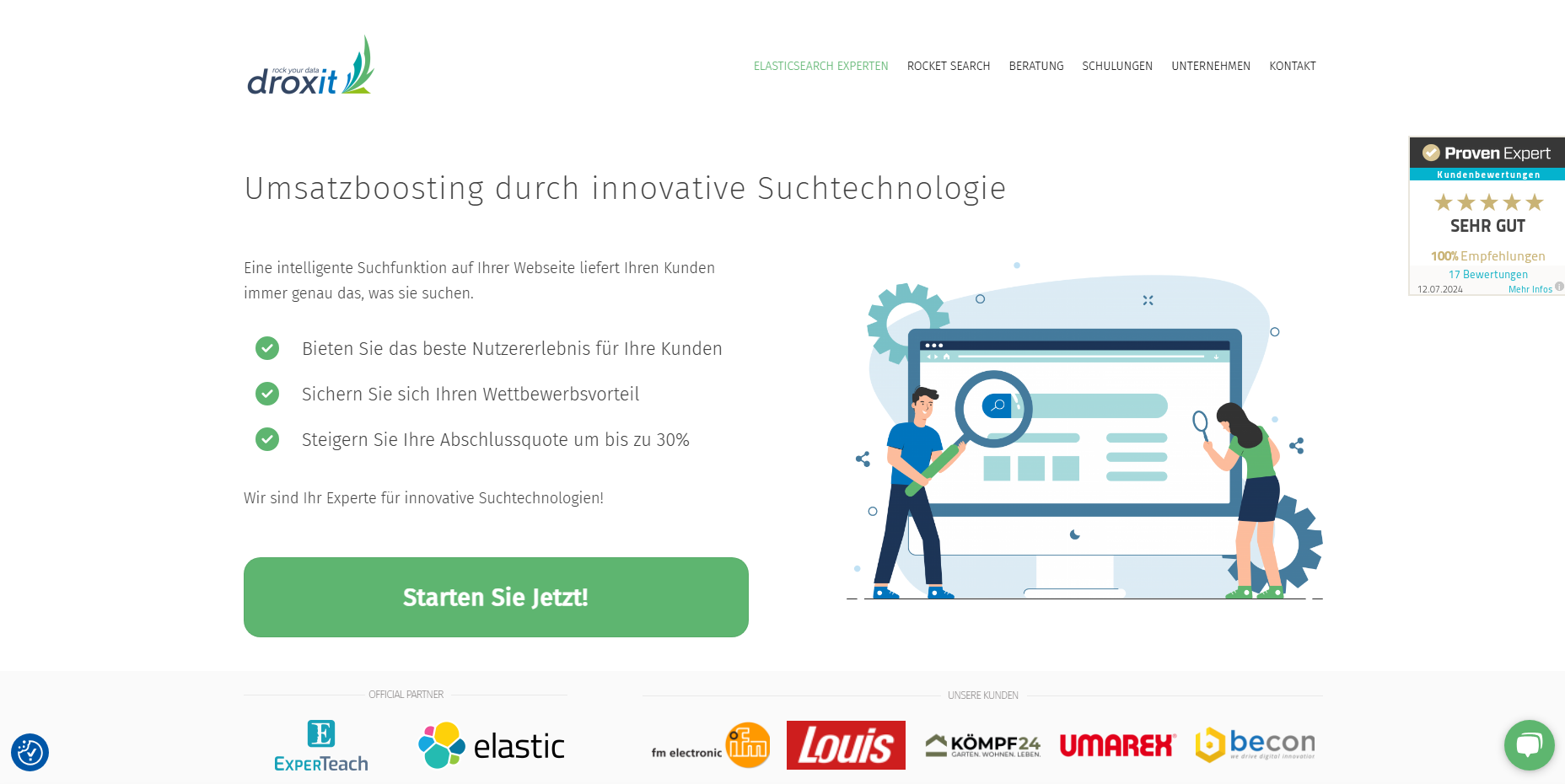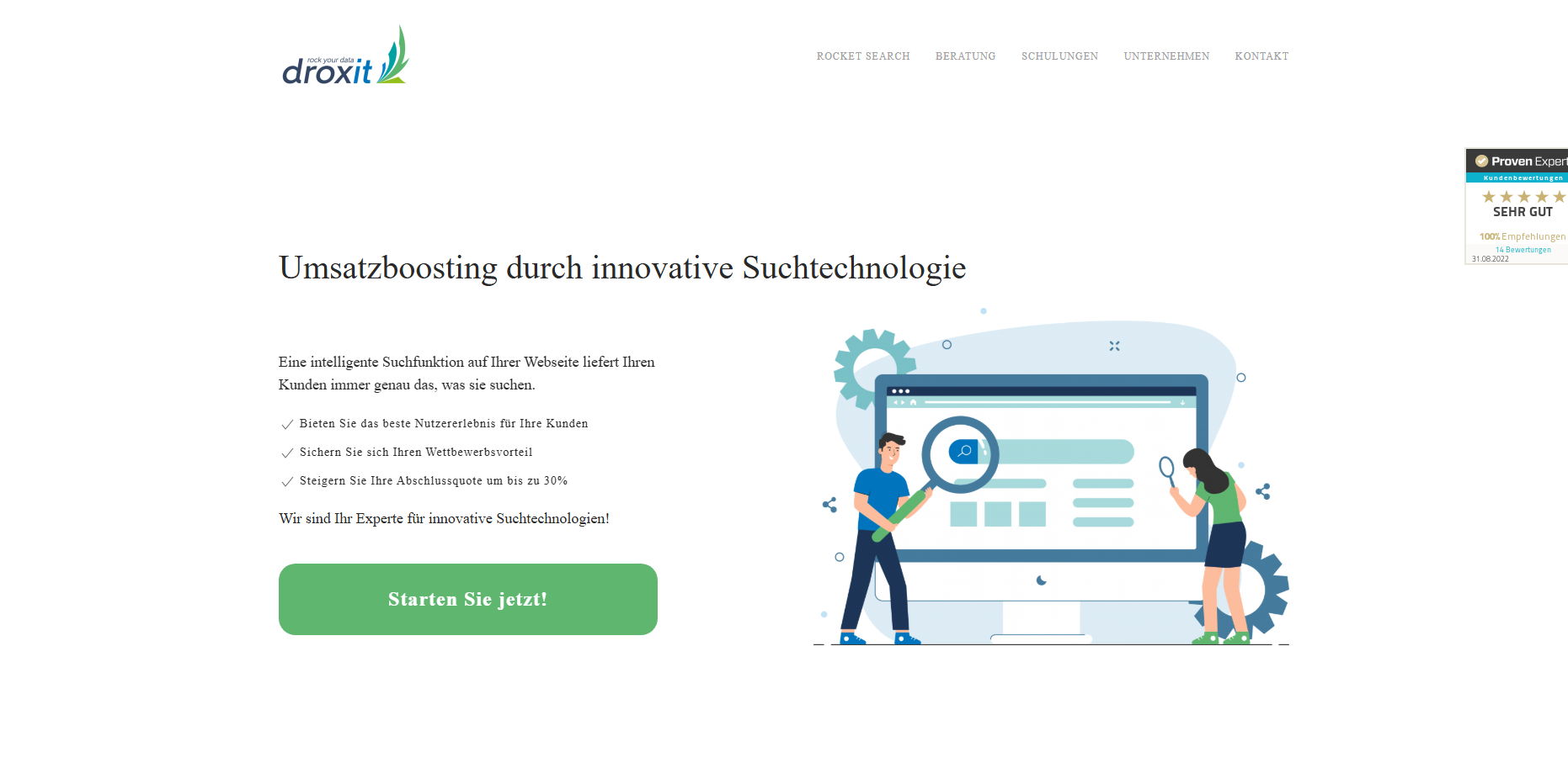Ein Kernprodukt ist „Rocket Search“, eine DSGVO-konforme Suchlösung für Webseiten und Onlineshops.
